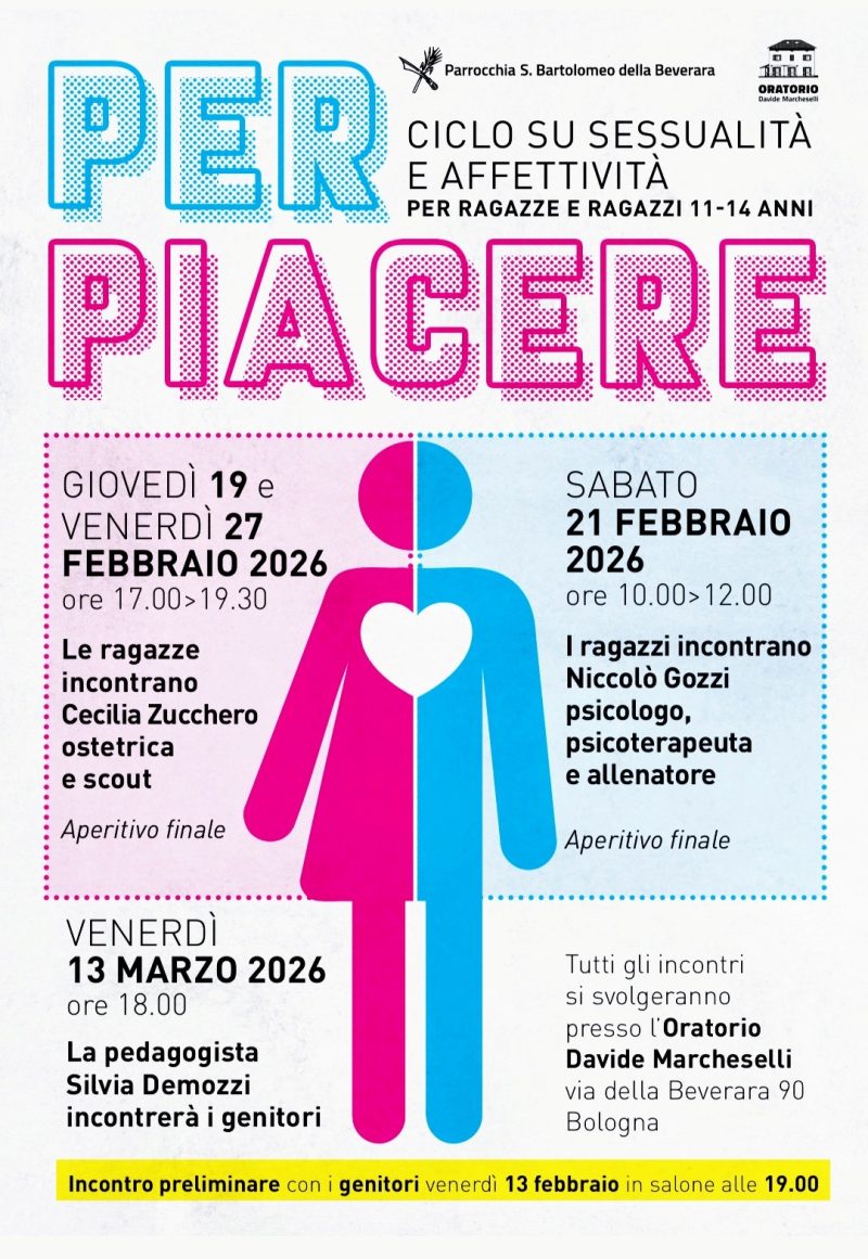 Il ciclo di incontri “Per Piacere” è un spazio dedicato al confronto sui temi dell’ affettività e della sessualità che ci coinvolgono tutti: ragazzi*, genitori, educatori, comunità educante.
