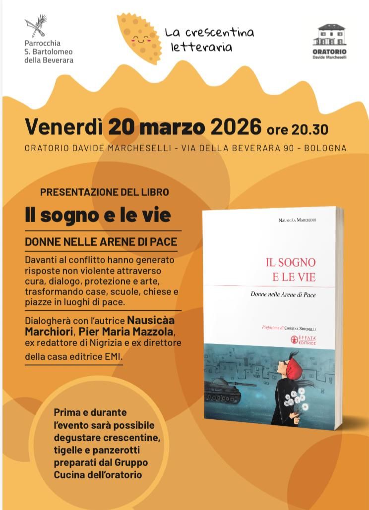 Beverara 22 Marzo 2026 Il sogno e le vie venerdì 20 Marzo Descrizione: Donne nelle arene di pace. Crescentina letteraria alla Beverara #crescentinaletteraria Inizio: 20/03/2026 20:30 Fine: 20/03/2026 21:30 Categorie: Beverara