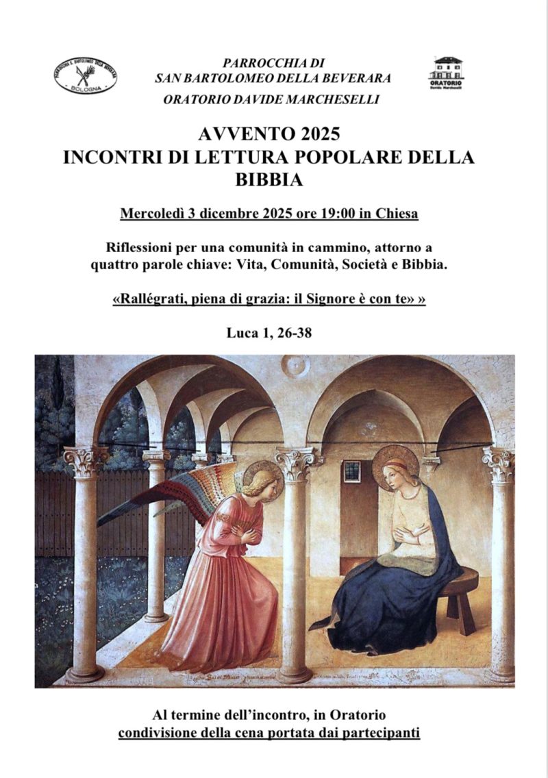 Alle 19.00 in Chiesa incontro di Lettura Popolare della Bibbia.